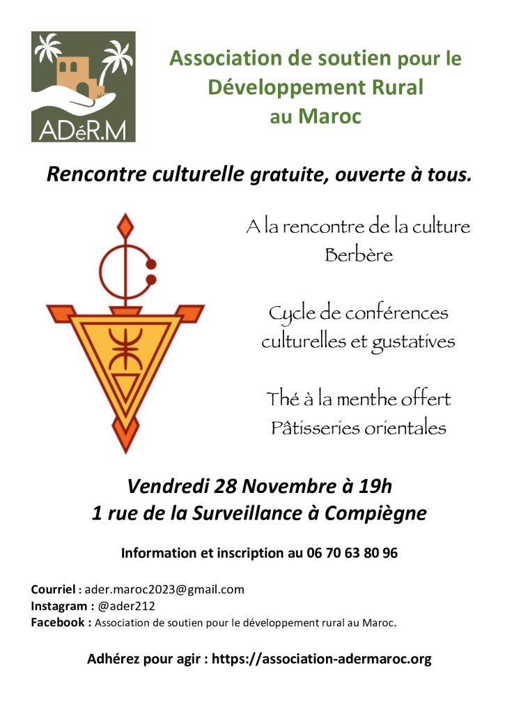 Cette année, ADéR.M vous propose de prendre part à des rencontres sur les origines de la culture Marocaine: La culture Berbère(Amazigh).